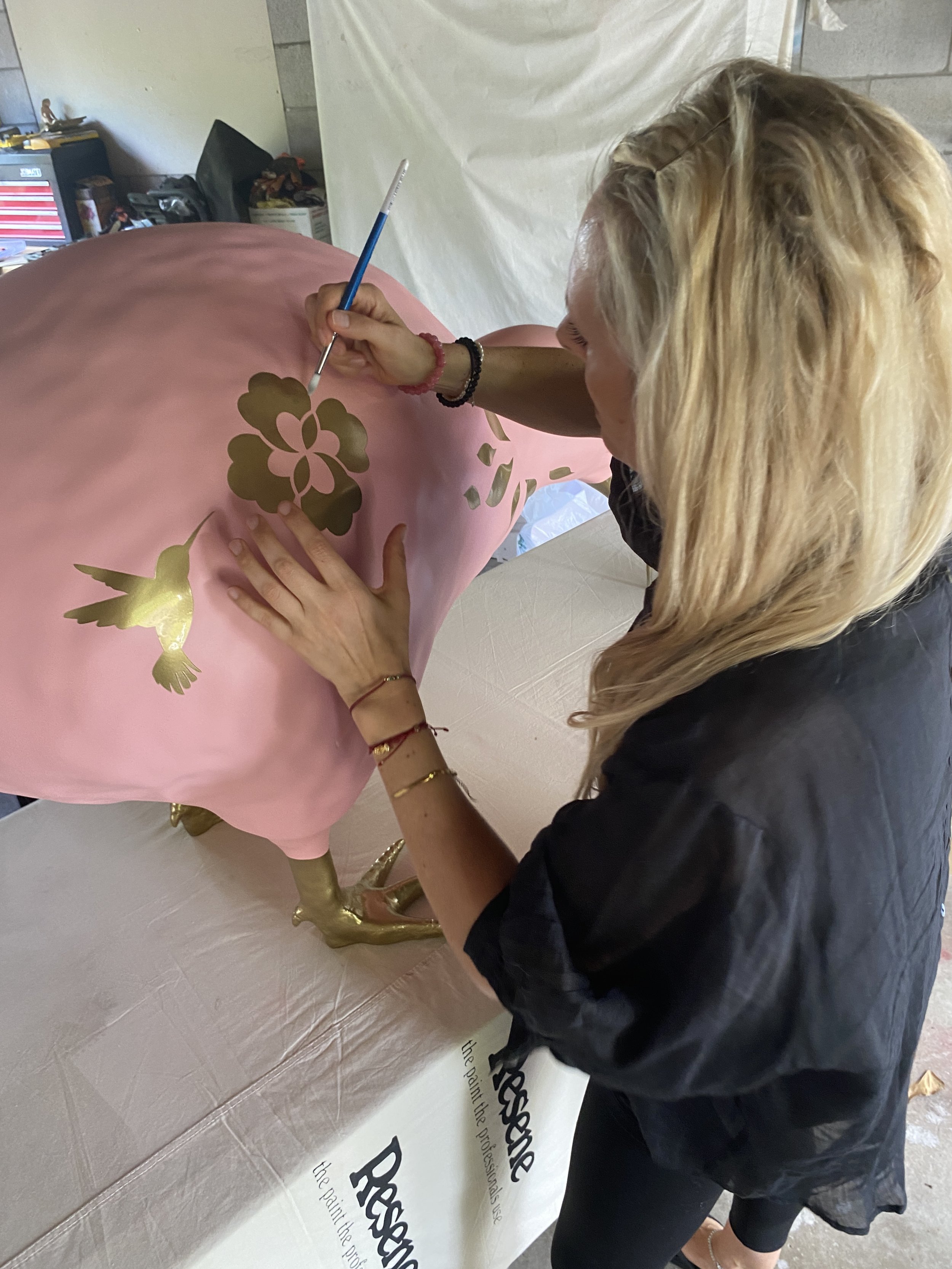 My kiwi was inspired by a sense of calm, care, and connection to nature. The soft pink represents a gentle, feminine energy, while the golden beak symbolises value, protection, and something precious. Together, they reflect how special Aotearoa New Zealand is, and how important it is that we look after our native wildlife, especially the kiwi.